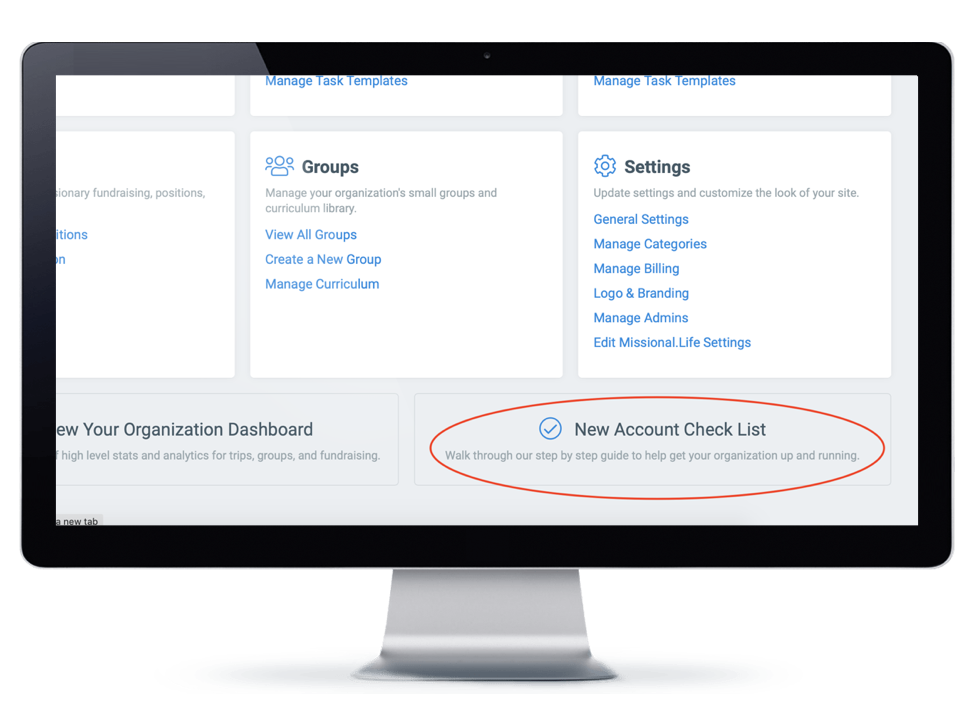 New Account Check List - look for the button in the bottom right of the page to select and view the check list for setting up a new account.