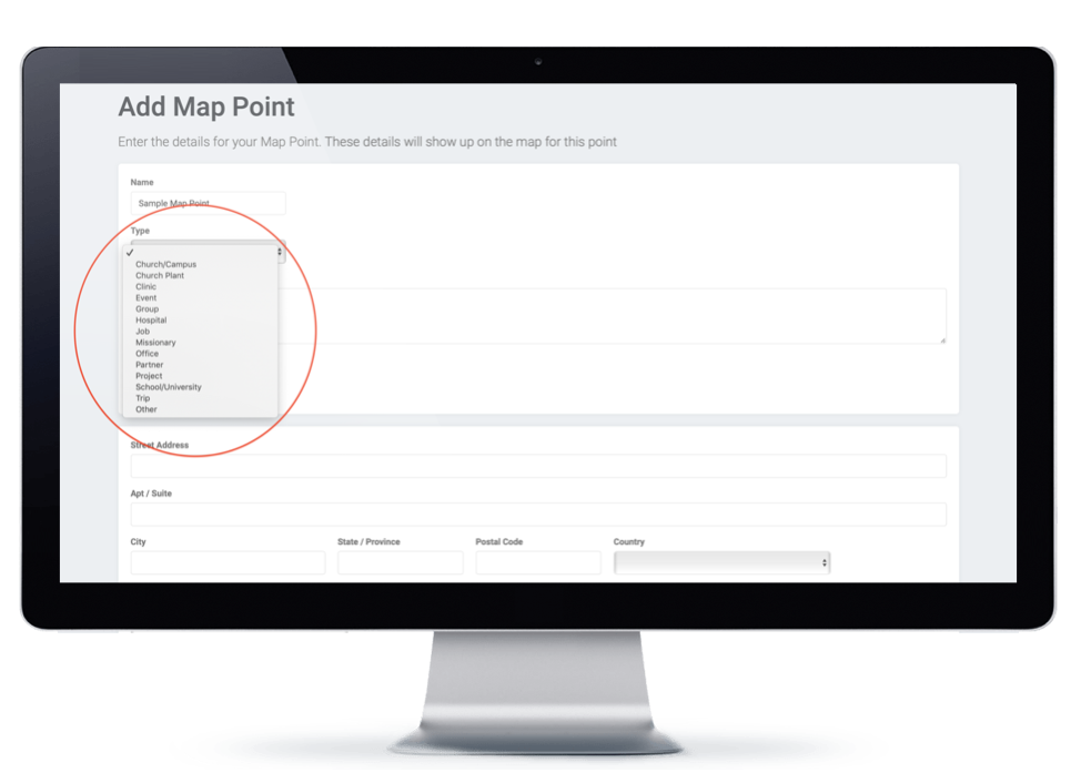 NOTE: Each different map point type generates a unique push pin style on the map and people viewing your map will have the option to sort by these map point types.