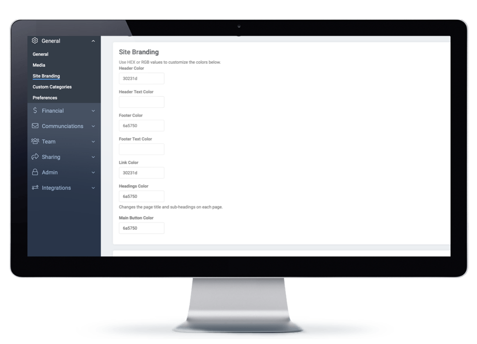 The branding tab allows you to set your site branding and images. This helps take major strides for making your site feel like home. Here you can load the following: