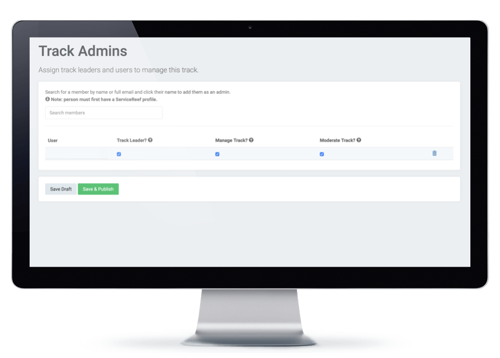 Tracks are another more complex or mature tool of ServiceReef and only for organizations who are being highly intentional in guiding their people and helping them walk through a process. These can be powerful tools for you to help encourage growth and keeping track (no pun intended) of your member's growth. Great job on stewarding these relationship and helping people take that next step into missional maturity!